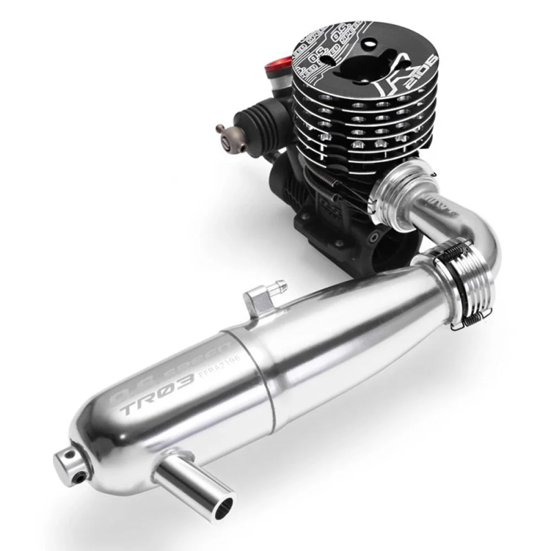 This is O.S. Engine R2106 Onroad Engine w/TR03 EFRA2196 & MR05 Pipe Combo Set. The OSSPEED R2106 is a new factory-tuned engine designed for 1/8th-scale on-road racing competition. The new 9-port cylinder liner with redesigned ports provides more power. For a great low-end power feel, we adopted the crankshaft from the R21 Euro II, as well as the well-proven ceramic ball bearing from the off-road engines. The redesigned reinforced connecting rod is now stronger to withstand all the tough on-road racing conditions.